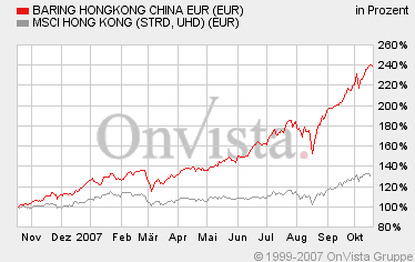 @ndy Oktober 21, 2007 @Stargate: Die entscheidende Frage ist doch mit wieviel Prozent deiner kompletten Kohle bist du in den Baring investiert? Solltest du entgegen aller Ratschläge den Baring extrem übergewichtet (>10 %) haben, rate ich auf alle Fälle auch mal ein paar Anteile mit Gewinn abzustossen um ein etwas vernünftigeres Verhälntis deiner Asset Allokation herzustellen. Sollte der prozentualle Anteil aber noch gesund sein, spricht doch nichts dagegen den Fonds zu halten. Langfristig machst du mit dem Fonds sicherlich nicht viel verkehrt, ansonsten schließe ich mich 100 % Bargains Meinung an. Eine gesunde Konsolidierung auf ein vernünftiges Niveau erscheint jederzeit möglich. :-" Fest steht doch: Der Baring Hongkong hat JAHRZEHNTELANGE Erfahrung in diesem Bereich(Erstauflegung 1982), da wollte bei uns von EM`s noch keiner was wissen. Natürlich gab es in letzter Zeit enorme Kurssteigerungen die unweigerlich Korrekturen nach sich ziehen werden aber langfristig gesehen haben EM`s und dazu zähle ich auch China(m. Hongkong) enormes Potential. Diesen Beitrag teilen Link zum Beitrag