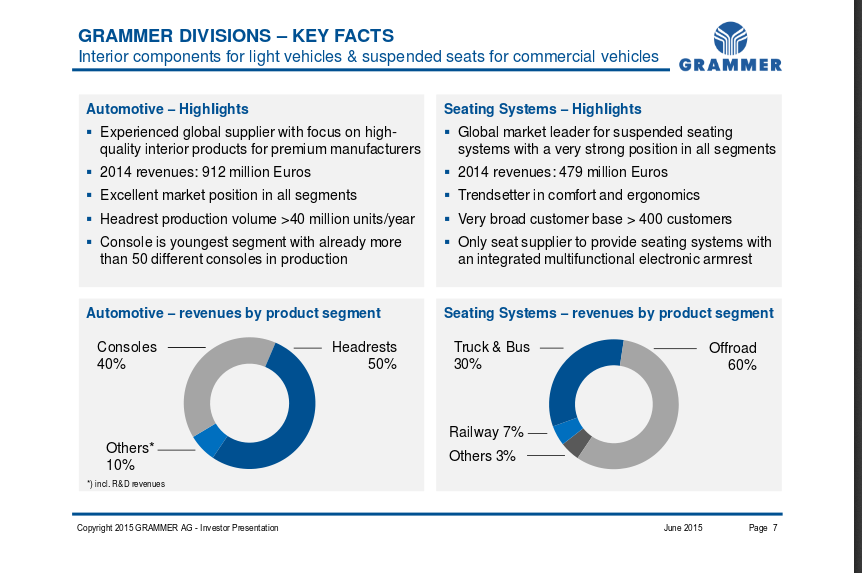 bounce Februar 27, 2016 01. SHW Automotive (VW macht 41% vom gesamten Umsatz aus) 02. Grammer (VW macht 23% vom gesamten Umsatz aus) 03. Faurecia (VW macht 18% vom gesamten Umsatz aus) 04. Plastic Omnium (VW macht 15% vom gesamten Umsatz aus) ... Danke für die Zusammenfassung. Ich wollte den angegebenen VW-Anteil bei Grammer überprüfen, den Handelsblatt von der Bloomberg-Schätzung übernimmt. Gefunden dazu habe ich nichts. Deswegen habe ich mal eine grobe Rechnung gestartet, basierend auf der angehangenen IR-Folie von Grammer: http://www.grammer.com/fileadmin/user_upload/images/investorrelations/praesentationen/2015/GRAMMER_Investor_Presentation_June_2015.pdf Ich meine, dass da irgendwas nicht stimmt. 23% bzw. 317 Mio € würde einen Gesamtumsatz von 1378 Mio. € ergeben. Der Umsatz kann aber nur aus dem Bereich Automotive kommen (912 Mio €) und aus dem Bereich Truck & LKW (macht 30% von 479 Mio. € Umsatz im Bereich Seating Systems aus = 144 Mio €.). Ergibt zusammen 1056 Mio. €. Da ist mir die Abweichung dann doch etwas zu hoch, weswegen ich schlussfolgere, dass die Angabe bei Handelsblatt (oder bei Grammer?) nicht stimmt und niiedriger sein müsste. Zudem kommt noch hinzu, dass hier nicht hervorgeht, ob VW oder der VW Konzern gemeint ist. VW dürfte selbst meiner Meinung nach keinen so großen Anteil haben, weil Grammer vorwiegend den Premium-Bereich beliefert, in Deutschland Audi, Daimler, BMW. Ich weiß nicht, wie der Einkauf bei Audi aussieht. Wenn der zentral über VW läuft, dann ok, wenn nicht, dann wären die 23% auch nicht stimmig von dem Gesichtspunkt. Interessant würde ich auch die Antwort auf folgende Fragestellung wissen: Können vertraglich vereinbarte Annahmepreise nachträglich gedrückt werden oder existiert eigentlich nur das Risiko, dass VW weniger Autos ausliefert und damit die Abnahmemenge sinkt? Gleichzeitig vermitteln viele Medienberichte den Eindruck, als ob Zulieferer den Autokonzernen machtlos ausgesetzt sind, beispielsweise was das Drücken von Preise angeht. Das bezweifel ich; wenn die Lieferanten keinen Nutzen aus einem Deal erzielen, werden die diesen auch nicht auf Teufel komm raus eingehen. Gegenseitig die Lieferanten ausspielen ist nachvollziehbar; aber auch bei den Lieferanten sind irgendwann Schmerzgrenzen erreicht, so dass diese bestimmte Aufträge dann ablehnen. Der günstigste gewinnt dann, d.h. Kostenführerschaft ist wichtig (bei ähnlicher Qualität, wobei das Branchenübergreifend gilt, solange keine starke Marke existiert (z.B. Harman oder Bose würde ich als Gegenbeispiel anführen) . Diesen Beitrag teilen Link zum Beitrag