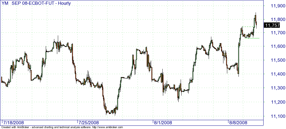 Future August 13, 2008 Die Korrektur bis 11500 ist nun erreicht. Mal sehen wie der Dow sich entwickelt. Dreht er im Tendkanal nach oben, oder verläßt er ihn nach unten? Wo hat denn der Dow seine nächste Unterstützung? Ich sehe erste eine bei 11000 vom letzten Tief Mitte Juli. Diesen Beitrag teilen Link zum Beitrag