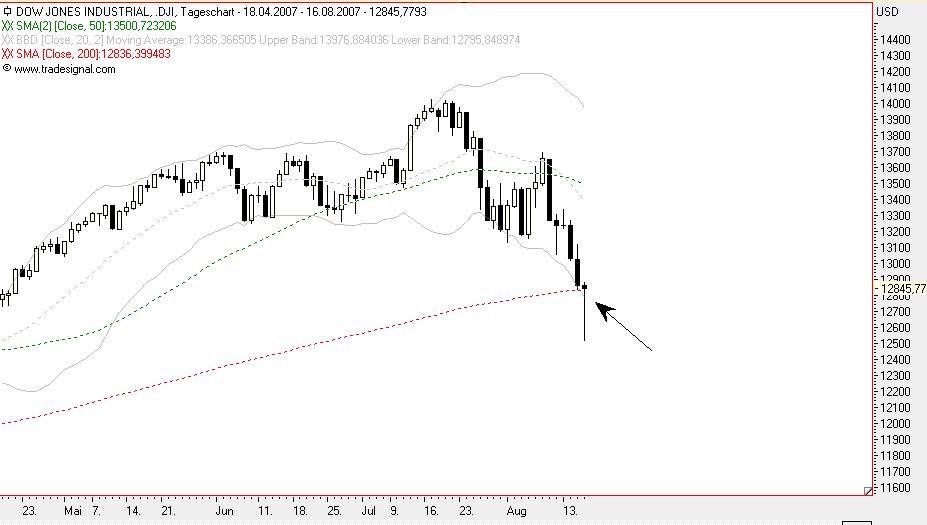 Es wäre mal wieder ein bißchen Korrektur nach oben nötig. Aber was der Dow macht, ist schon spitze. Das sah 2002/2003 schon genauso aus. Dow startet tief, DAX verdoppelt dieses Minus gleich noch mal. Dow zieht nach Börsenschluß in Europa wieder nach oben. DAX bleibt am nächsten Tag aber unten und das ganze wiederholt sich.