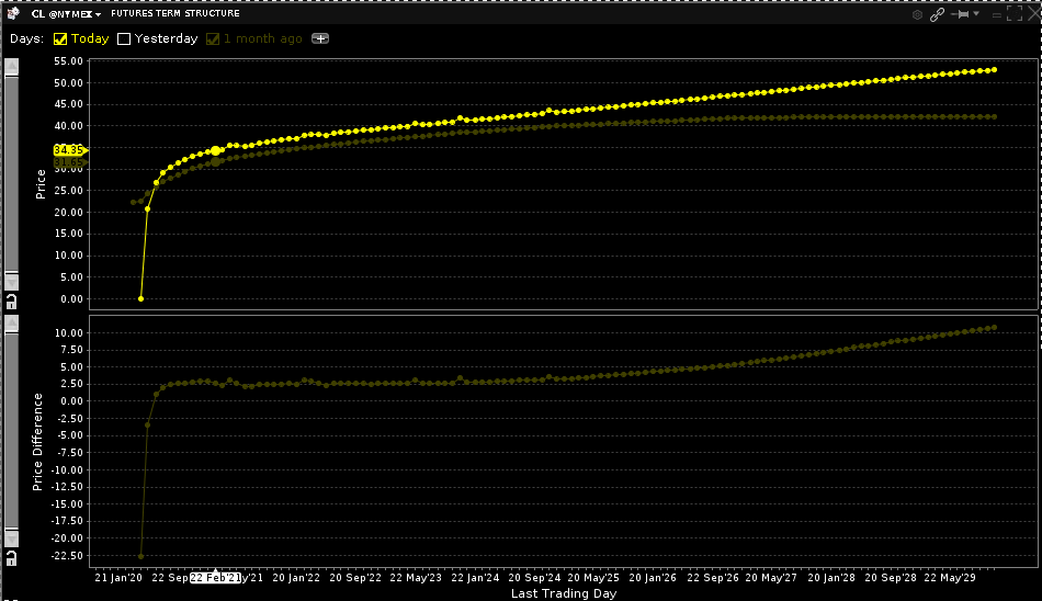 Interessanterweise steigen die Ölpreise bei Futures mit längerer Laufzeit merklich